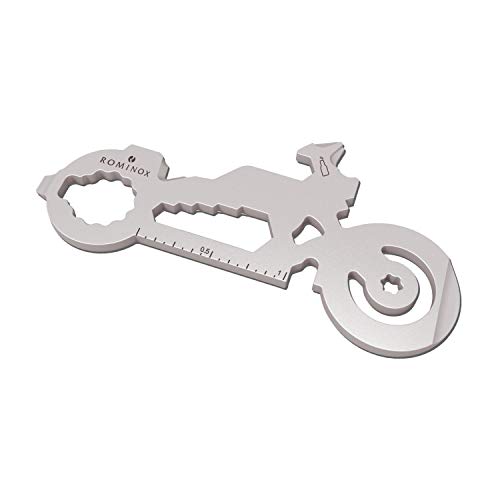 Geschenkartikel: ROMINOX Key Tool Motorbike, 21 Funktionen, Keytool Schlüsselanhänger Motorrad, Bike, Edelstahl Multitool, Funktionsbeschreibung, Multifunktionswerkzeug, Einkaufswagenlöser