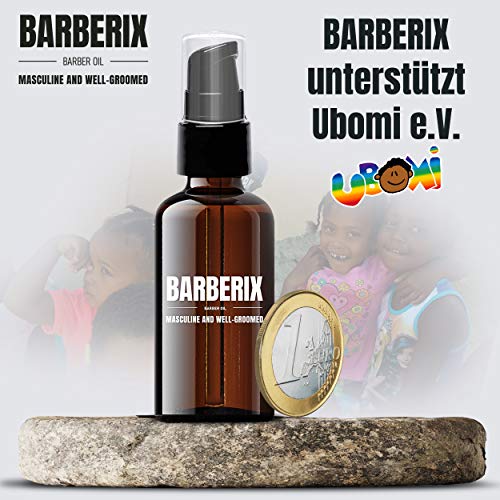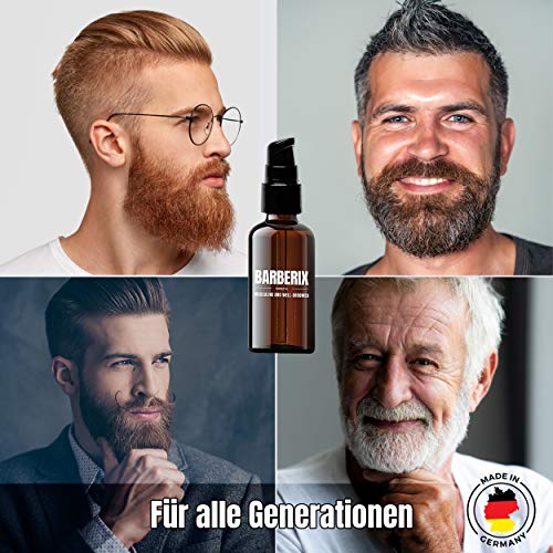 ???? KANN ZUVERLÄSSIG VOR SCHUPPEN SCHÜTZEN - Dank unserem wertvollen Jojoba Bart Öl (es besteht aus dem hochwertigen Simmondsia Chinensis Seed Oil) wird Ihr anspruchsvoller Bart und die Haut darunter unglaublich gut gepflegt und geschützt. Schuppen auf Jacken, T-Shirts und Hemden und können so zuverlässig der Vergangenheit angehören.. ???? KEIN JUCKEN & KRATZEN MEHR AUF DER HAUT - Sobald Barthaare länger werden, reicht die produzierte Talgmenge nicht mehr aus. Das Ergebnis ist eine trockene und juckende Haut. Dank unserem wohlriechenden Bartöl wird Ihre Gesichtshaut langanhaltend und positiv vor Feuchtigkeitsverlust geschützt. Kein Jucken und Kratzen mehr.. ???? DREITAGEBART, VOLLBART & SCHNAUZER - Unser wertvolles Beard Oil eignet sich für alle Barttypen. Das hochwertige Simmondsia Chinensis Seed Oil kann die Ausbreitung von Keimen verblüffend verhindern. Somit eignet es sich spürbar für alle Barttypen, egal wie lang oder kurz Ihr stilvoller Bart auch sein mag.. ???? EIN DEZENTER DUFT FÜR IHRE NASE - Vergessen Sie nicht – der Bart befindet sich direkt unterhalb Ihrer Nase, Sie müssen das Bartpflege Öl den ganzen Tag riechen können. Deswegen haben wir einen dezenten, herben und natürlich wohlriechenden Duft gewählt. Und dank MADE IN GERMANY können Sie auf gesetzlich zugelassene Inhaltsstoffe vertrauen. Selbstverständlich 100% vegan und ohne Tierversuche hergestellt.. ???? UNSER BARBERIX VERSPRECHEN - Wenn Sie mit unserem Bartöl nicht 100% zufrieden sind, erhalten Sie Ihr Geld zurück. Das Versprechen wir Ihnen! Innerhalb von 30 Tagen. Verblüffend unkompliziert und einfach. Ohne Wenn und Aber. Sie können sich zuverlässig auf uns verlassen!