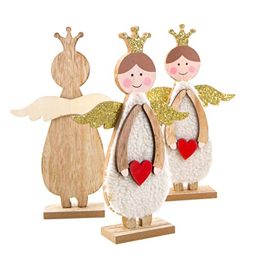 3 liebevoll gestaltete große Engel aus Holz - Weihnachtsdeko zum Hinstellen. Ein Engel ist ca. 24 cm groß und steht auf einem Holzsockel, wodurch er einen guten Stand hat und daher super ist als Deko für den Tisch, Schreibtisch, fürs Wohnzimmer, Büro oder fürs Fensterbrett.. Die Engel tragen eine golden glitzernde Prinzessinnenkrone sowie flitzernde Engelflügel. Dadurch sind die Engel besonders beliebt bei Kindern, vor allem bei Mädchen. Sie werden nicht nur gerne in der Weihnachtszeit sondern auch zum Geburtstag oder zu Anlässen wie Kommunion oder Firmung verschenkt.. Schön sind die großen Engel auch als Weihnachtsgeschenk für Freunde, Familienmitglieder, Kollegen, Mitarbeiter oder auch für Kunden. Über schöne Weihnachtsdeko zum Hinstellen freut sich jeder. Die Engel gibt es auch einzeln zu kaufen.. In unserem Amazon-Shop findet ihr noch viele weitere kleine Weihnachtsgeschenke, Weihnachtsdeko für jeden Geschmack, Gastgeschenke und Geschenkideen für verschiedene Anlässe sowie die passenden Geschenkverpackungen. Schaut doch Mal vorbei ??. Mit LIEBE und HERZ vom kleinen und blitzschnellen Logbuch-Verlag aus Bayern.