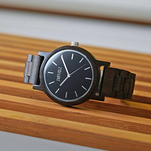 ZARTHOLZ Herren Damen Unisex Holzuhr Holz-Armbanduhr Klassik (Sandelholz Schwarz)