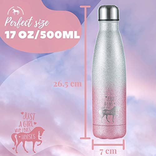 IMPRESSIVES DESIGN: Die Silhouette eines Pferdes und das Zitat „wild und frei“ werden sicherlich jeden Pferdeliebhaber in Erstaunen versetzen. Vervollkommnen Sie für Ihren besten Freund, Schwester, Tochter, Nichte, Freundin, Frau, Mitarbeiter oder jeden, der von Pferden besessen ist.. BPA-FREIER & EDELSTAHL: Hergestellt aus nahtlosem Edelstahl 18/8 (304) in Lebensmittelqualität. Auslaufsicher, umweltfreundlich und ungiftig.. FUNKTIONSFLASCHE: Das Fassungsvermögen von 500 ml ist groß genug, um alle Arten von Alkohol aufzunehmen. Geeignet für alle Indoor- oder Outdoor-Aktivitäten. Das doppelwandige vakuumisolierte Design hält Getränke 24 STUNDEN kalt oder 12 STUNDEN heiß.. GESCHENKKASTEN BEREIT: Mit einer exquisiten Geschenkbox ist diese Flasche ein Geschenk zum Feiern von Meilensteinen, Erfolgen und besonderen Tagen wie Geburtstag, Erntedankfest, Weihnachten, Abschlussfeier, Einweihungsfeier, Feiertagen, Mädchenwochenende usw.. Zufriedenheit garantiert - 30 Tage Geld-zurück-Garantie und lebenslanger Service-Support für Ihre Zufriedenheit.
