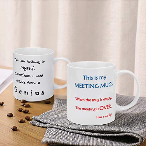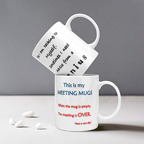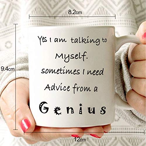 Humorvolle Worte: “ Yes I am talking to myself. Sometimes I need advice from a genius” Kaffeetasse. Sie kann die Stimmung des Humors schnell steigern. Wenn Sie es im Büro, zu Hause oder an einem anderen Ort verwenden, bringt die lustige Kaffeetasse einen Sinn für Humor in die Umgebung, insbesondere auf Partys oder als Geschenk.. Tolle Geschenkverpackung: Jede humorvolle Kaffeetasse wird sorgfältig in einer haltbaren Geschenkbox verpackt. Vervollkommnen Sie als humorvolles Geschenk für Ihren Liebhaber, Freund, Kollegen, Familie oder täglichen Gebrauch, diese lustige Kaffeetasse ist Ihre beste Wahl.. Geeignete Kapazität: 12 Unzen Kapazität kann den täglichen Gebrauch gut erfüllen. Geeignet für kalte und heiße Flüssigkeiten, ideal für Kaffee, Tee und eine Vielzahl von Getränken.. Robuste und sichere Keramik: Unsere Kaffeetasse besteht aus 100% reinweißer Hochglanzkeramik, die aus robuster und sicherer Keramik besteht. Außerdem sind Geschirrspüler und Mikrowelle vorhanden. Sie brauchen sich keine Zeit zum Abwaschen des Geschirrs zu nehmen und nicht darauf zu warten, dass das Wasser auf dem Herd kocht.. Kratzfester Aufdruck: Die Tasse ist mit den hochwertigsten Materialien bedruckt, um sicherzustellen, dass die Tasse lange hält, ohne zu zerkratzen oder zu verblassen. Sieht jeden Tag aus wie eine neue Tasse.