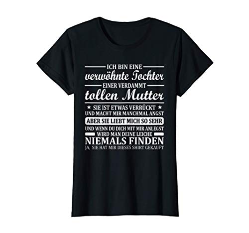 Ich bin eine verwöhnte Tochter einer verdammt tollen Mutter. Sie ist etwas verrückt und macht mir manchmal Angst. Aber sie liebt mich so sehr und wenn du dich mit mir Anlegst wird man deine Leiche niemals finden. Tolles Stolze Mutter Geschenk. ... [mehr]