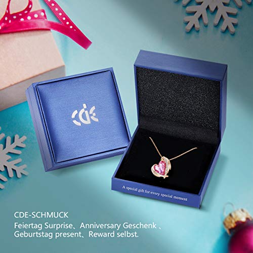 ? PINK ANGEL DESIGN ? Dieser elegante Anhänger wurde von Rosegold Wing Rahmen mit einem Rosa Herz Kristall in der Mitte gefertigt. Das fließende Design ist inspiriert von weicher und anmutiger Wing, die am Himmel flattert und sich um die wahre Liebe dreht. Rose Gold Halskette ist das beste Geschenk für faszinierendes Mädchen, auch die auffällige Kollektion für jeden Anlass!. ? DESIGN INSPIRATION ? Zarte Rose Gold Mädchen Halskette mit Herz Anhänger Kristall in Rosa. Die Halskette schließt mit einem klassischen Lobster Verschluss. Die Anhänger kann von der Kette getrennt werden. Diese Rosegold glänzende Ausgabe des Halskette, ist ein eleganter, raffinierter und vielseitig tragbarer Dauerbegleiter, der jedes Outfit immer und überall ausgehfein macht.. ? HALTBARKEIT MATERIALIEN ? Die schöne Rosegold Halskette sind enthalten absolut kein Nickel oder Blei. Platin ist das perfekte Metallmaterial. Es ist Für hohen Tragekomfort, besonders für Menschen mit empfindlicher Haut. Das sanfte Funkeln dieses Stilfavoriten passt perfekt zu vielen anderen CDE Designs und ist die ideale Geschenkidee für den Muttertag.. ? GESCHENKPAKET ? Die Schmuck wird mit einem hübschen CDE Schmuck Box kommen. Die Schmuck Geschenk Box besteht aus einem Poliertuch, einer Herz Halskette. Dieses Herz Halskette könnte Beste Mutterstag Geschenke, Geburtstag Geschenke, Jahrestag Geschenke, Weihnachtsgeschenke, Abschluss Geschenke, Valentinstag Geschenke, etc.. ? KUNDENSERVICE ? Wenn es Probleme mit dem Kauf gibt, zögern Sie nicht uns zu kontaktieren, wir helfen Ihnen, das Problem innerhalb von 24 Stunden zu beheben.