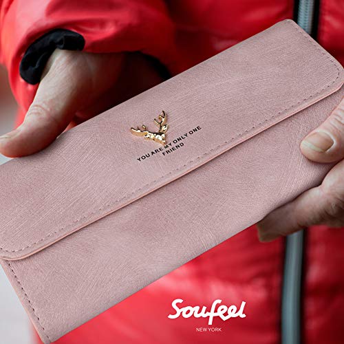 SOUFEEL Personalisiert Damen Portemonnaie aus Leder mit Foto Druck Gravur Lang Fashion Geldbörse mit 8 Kartenfächer 9.2x18.7x2 (B x H x T) Geburtstag Geschenk für Frau Mutter Tochter Freundin rosa