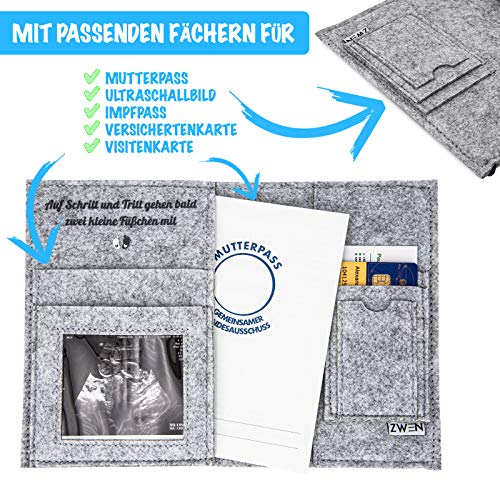 ?? MEINE SCHWANGERSCHAFT: Auf Schritt und Tritt gehen bald zwei kleine Füßchen mit! Die süße ZWEN Mutterpass Hülle aus Stoff (Wollfilz) begleitet Sie in Ihrer Schwangerschaft mit Baby im Bauch beim Mutter werden. ???? GESCHENKE FÜR WERDENDE MÜTTER: Schwanger werden ist ein Segen. Mutter werden das Ziel der Schwangerschaft. Verschenken Sie Liebe mit diesem Mamipass und zaubern ein Lächeln auf die Lippen der beschenkten Mama. ????? SCHUTZHÜLLE FÜR MUTTERPASS: Passgenau und sicher verstaut diese Hülle Mutterpass, Ultraschallbilder, Impfpass, Krankenkassenkarte & weitere Dokumente während Sie schwanger sind. ?? SICHERER VERSCHLUSS MIT VORTEILEN: Durch das elastische Band lässt sich unsere Dokumententasche auch schnell mal einhändig öffnen und schließen. ? MAMAPASS MIT TOP QUALITÄT: Top Verarbeitung und optimale Passform bei diesem Mutter Pass (Deutsch). Sollte etwas nicht stimmen, melden Sie sich bei uns und wir klären Ihr Problem sofort