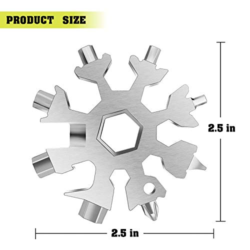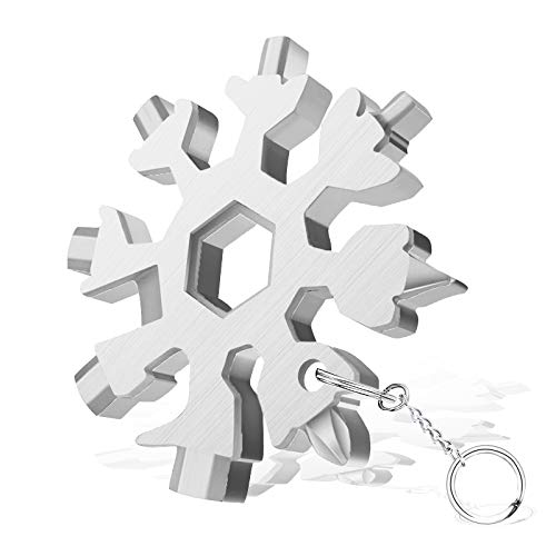 ?[Multifunktionales praktisches Werkzeug]: Sehr vielseitiges Schneeflockenwerkzeug, kann als Flaschenöffner, Kistenöffner, Schlitzschraubendreher, Kreuzschlitzschraubendreher, Sicherheitshammer, Schraubenschlüssel, Fahrradreparaturwerkzeug usw. verwendet werden.. ?[Ultraleicht und leicht zu tragen]: 2,0 Zoll / 6,0 cm Länge, 0,12 lbs./ 57 g / 2,0 Unzen. Professionelles Design und leichte Materialien machen dieses Schneeflockenwerkzeug sehr leicht zu tragen. Nützlich zu jeder Zeit, nehmen Sie eine mit!. ?[Freier Schlüsselring]: Das Schneeflockenwerkzeug wird mit einem kostenlosen Schlüsselring geliefert. Es kann am Schlüssel oder Rucksack aufgehängt werden, um die Möglichkeit eines Verlusts zu vermeiden.. ?[Langlebig & Edelstahl]: Hergestellt aus Edelstahl & polierter Oberfläche. Korrosionsbeständig, langlebig und rostfrei.. ?[Cooles Geschenk & ausgezeichnete Qualität]: Praktische Werkzeuge für Männer, Jungen, Küche, Außenbereich, Bar, Pub usw. Schneeflockentyp Ideales Geschenk für Weihnachten / Urlaub / Veteranentag, das eine heiße Atmosphäre schafft.