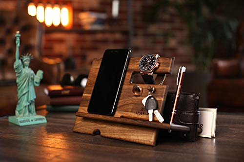 Massives Walnussholz. Dieser Ständer wird ein Blickfang und sehr praktisches Accessoire auf Ihrem Schreibtisch, Nachttisch.. Hochwertiges Design, mehrere Fächer, kompakt, 21,6 x 19,6 x 16,5 cm. Ergonomisches und durchdachtes Design macht diesen Ständer für viele Geräte geeignet. Sie können es auch verwenden, nachdem Sie Ihre Telefonhülle wechseln oder Ihr Telefon aufrüsten. Kompakte Größe: 19,1 x 19,1 x 26,9 cm.. 100% NATÜRLICH & ÖKOFREUNDLICH Hohe Qualität, mit Schutzmittel behandelt.. Intelligente Schreibtisch-Organisation. Sparen Sie Zeit und machen Sie Ihren Arbeitsplatz effizienter.. Praktisches und benötigtes Geschenk. Überraschen und erfreuen Sie Ihren Ehemann, Vater, Sohn, Freund, Bruder, Ihren Freund, Kollegen oder Chef. Bestes Geschenk für Weihnachten, Geburtstag, Vatertag, Jahrestag, Abschluss. Der Ständer ist in einer umweltfreundlichen, rustikalen Geschenkbox verpackt.