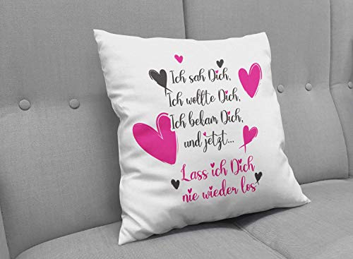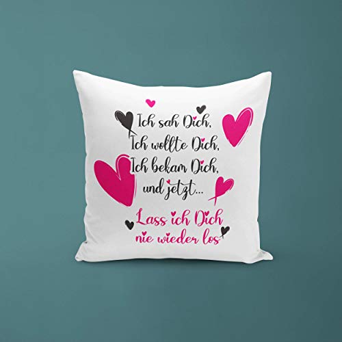 Kissen mit Spruch - Ich SAH Dich, ich wollte Dich, ich bekam Dich und jetzt.Lass ich Dich nie Wieder los - Deko Kissen - Geschenk - Geschenkidee - Schatz - Valentinstag - Herz - Liebe -mit Füllung