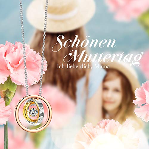 ? Inspiration ? Dieser Anhänger verfügt über drei geschichtete Kreise, die eine anmutige dreidimensionale Wirkung entfalten und mit einem funkelnden Swarovski Kristall verziert sind, der in der Mitte kontinuierlich tanzt. Gravierte "Mom I Love You" & "Mom . Always be with You". Es ist eine perfekte Wahl für Mama.. ? Spezifikation ? Anhänger Größe: 1,78 * 1,78cm; Kettenlänge: 45+5cm; Gewicht: 7g / 0,25oz. Halskette aus 925er Sterlingsilber mit umweltfreundlichem aus Platin und Roségold sowie Gelbgold Überzug. Hypoallergen, bleifrei und nickelfrei, SGS-Prüfstandard bestanden. Kristallrohstoffe stammen von Swarovski.. ? Tolle Geschenkidee ? Schmuck wird in einer schönen Schachtel geliefert, es ist keine Verpackung erforderlich. Tolle Geschenke für Frauen, für sich selbst und für die besondere Person, die Ihnen am Herzen liegt! Perfekte Geschenkideen für Weihnachten, Valentinstag, Muttertag!. ? Kami-Idee Kundendienst ? Kami Idea bietet eine 30-tägige Geld-zurück-Garantie und einen lebenslangen Garantieservice. Der Versand erfolgt durch Amazon, genießen Sie die schnelle und sichere Lieferung!. ? Schmuck-Tipps ? Bitte tragen Sie es ohne heißes Wasser, Seewasser, Shampoo, Duschcreme, Parfüm und andere ätzende Flüssigkeiten. Berühre es nicht oft. Reiben Schmuck mit Babytüchern und dann reiben Sie es mit einem sauberen trockenen Baumwolltuch. Schmuck separat lagern.