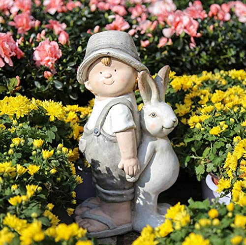? Das Produkt wird aus Harzmaterial hergestellt, nicht leicht zu deformieren, sicher und umweltfreundlich, von Hand bemalt, voll und natürliche Farbe.. ? Die Gesamtgröße ist 22x15x40cm, das Kind und die Kaninchen Rücken an Rücken liegen, der Ausdruck süß ist, die dreidimensionale Schicht, die Unebenheit und das lebhafte Bild.. ? Es ist geeignet, in einem Garten oder im Wohnzimmer platziert zu werden.Es kombiniert Schönheit und Zweckmäßigkeit, klar und lebendig, die Menschen unbegrenzte Träumerei geben.. Verleihen Sie Ihrem Interieur oder Exterieur eine zusätzliche Schönheit, die sich perfekt für Wohnkulturprojekte eignet.. Kreative Geschenke für Ostern, Geburtstag, Weihnachten, Muttertag, Vatertag, Valentinstag usw. Geeignet für Heim- oder Bürodekoration