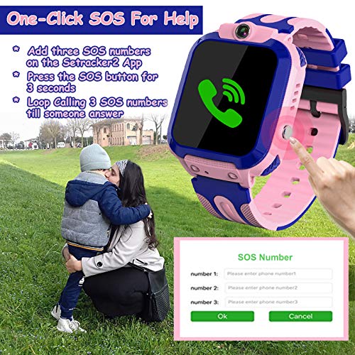 ????Wasserdichte Smartwatch für Kinder: Anruf, Voice-Chat, Kamera, Wecker, SOS, Mathe-Spiele, Klassenmodus, Sicherheitszone, Telefon usw. Der superempfindliche Touchscreen erleichtert Kindern die Verwendung, genau wie ein tragbares Mini-Kinder-Smartphone, definitiv eine gute Wahl für Spielzeuggeschenke für 4-12 jährige Kinder!. ????Anruf und Voice-Chat: Die Kinder Smartwatch kann 10 Telefonnummern speichern. Eltern und Kind können sich jederzeit und überall gegenseitig anrufen. Darüber hinaus können Sie Sprachnachrichten über APP senden. Förderung der Kommunikation zwischen Eltern und Kind.. ????SOS-Notruf: Eltern können 3 SOS-Nummern in APP speichern. Halten Sie die SOS-Taste in der Smartwatch kinder 3 Sekunden lang gedrückt. 3 Telefonnummern werden nacheinander gewählt, bis jemand antwortet. Dies hilft Kindern bei der Kurzwahl in Notfällen.. ????Klassenmodus: Eltern können 3 Zeiträume im "Nicht stören-Modus" einstellen. Alle anderen Funktionen wie Anrufen, Spielen und Spielen sind verboten, mit Ausnahme von SOS-Notfällen. Sie müssen sich also keine Sorgen machen, dass Ihre Kinder im Unterricht oder beim Lernen gestört werden.. ????Kinder Smart Watch LBS Tracker: Double Position Technology, geben Sie Ihren Kindern doppelte Sicherheit. Die Positionierung der Uhr basiert auf der LBS/AGPS-Signalstation Ihres Standorts und hängt auch vom Netzwerksignal in Ihrer Nähe ab. Realisieren Sie die ganztägige Standortverfolgung in Echtzeit.