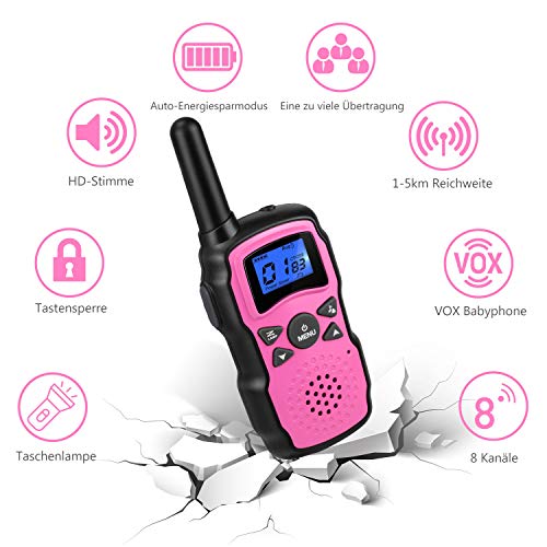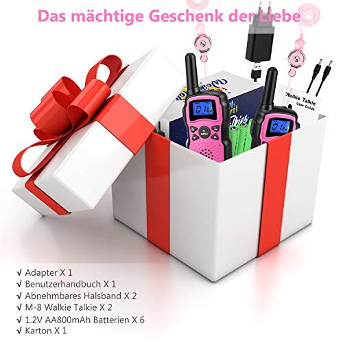 ???????? ?Walkie Talkies wiederaufladbar?: Jede Bestellung wird mit USB-Ladegeräten und wiederaufladbaren 3 * AA1000mAh-Batterien geliefert. Die automatische Energiesparfunktion verlängert die Batterielebensdauer und verlängert die Unterhaltungszeit. ?????????????Bestes Geburtstags- und Weihnachtsgeschenk?: Fantastisches Weihnachtsgeburtstagsgeschenk und lustige Spielzeugidee für Kinder ab 3-12 Jahren. Das beste Familiengeschenk für gemeinsames Abenteuer-Camping.. ?????Fernübertragung?: Mehrer Paar Zwei-Wege-Funkgeräte der PMR-Familie mit 8 Kanälen, bis zu 1km in Nachbarschaftsbedingungen, bis zu 5km in offenen Gewässern Rufton und Tastensperre zum Verhindern der Änderung der Einstellungen. ???? ?Sicherheit, Tag und Nacht Kameradschaft?: Walkish Talkies für Kinder von Wishouse sind absolut sicher, bestehen aus umweltfreundlichen Materialien und verfügen über ein CE-Zertifikat. Es gibt eine eingebaute Taschenlampe zum Spielen in der Nacht. Tag und Nacht Kameradschaft, keine Angst vor der Nacht oder einsam fühlen. Bestes Erinnerungsgeschenk für Kinder.. ???????????? ?100% risikofrei?: Verkauft von Original-Manufaktur mit hoher Qualität und exzellentem After-Sales-Service, 24/7 technischer Support. Seien Sie bitte der Kauf versichert. Bei Fragen wenden Sie sich bitte an.