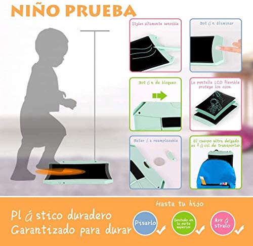?Helleres Screen Writing Tablet?: Das Doodle Board verwendet die LCD-Varistortechnologie und ist 50% heller als andere Tablets. schreibtafel LCD-Bildschirm ohne Strahlung und ohne Blendung, schützen Sie die Augen Ihrer Kinder vor Schaden und setzen Sie ihren natürlichen Instinkt frei.. ?Lange Lebensdauer und Komfort?: Kein Geld für Papier und Stift ausgeben. Mit dem lcd schreibtafel kinder können Sie wie endloses Papier jederzeit und überall malen, schreiben, Graffiti erstellen und Notizen machen. Sie müssen sich keine Sorgen machen, dass die Bilder nicht gelöscht werden können. Klicken Sie einfach auf die Schaltfläche "Löschen". Das Bild wird spurlos ausgeblendet. Das Schreiben von Tablets kann 100.000 Mal wiederverwendet werden.. ?Starke Sperrfunktion?: Sie können die Löschtaste sperren und das Muster auf dem kinder tablet belassen. Durch Entsperren der Löschtaste wird das Muster weiterhin gelöscht. Die eingebaute Batterie des magnetischen Zeichenbretts kann mindestens 6 Monate lang verwendet werden, ohne dass der Akku aufgeladen oder eingesteckt werden muss. Wenn die Batterie leer ist, können Sie die Batterie austauschen.. ?Tragbar und langlebig?: Der 8,5-Zoll Kleinkind Zeichenbrett wiegt 0,183 kg und Sie können einfach in den Rucksack.Das LCD Schreibtablett ist wasserdicht, stoßfest und tropfenfest, und Sie müssen sich keine Sorgen machen, dass Ihre Kinder es brechen.. ?Das beste Geschenk für Kinder und Erwachsene?: Das LCD-Schreibtablett kann als schreibtafel?lcd schreibtafel?Zeichenbrett, Notizblock, schreibtafel elektronisch?wiederverwendbares Notizbuch, Büroschreibbrett, Zeichenbrett, Grafikhilfen, magisches Kinderbrett,tablet für kinder? maltafel?lcd elektronische schreibtafel?Gekritzelbrett usw. verwendet werden. Sie können sich vorstellen, eine kinder Schreibtafel als Geschenk für den Schulanfang, den Geburtstag, den Erntedankfest, Ostern.