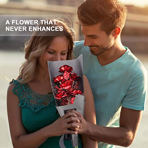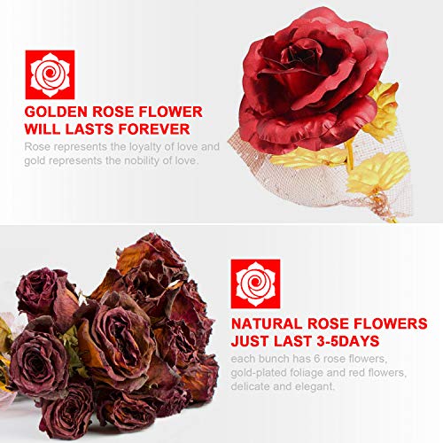 NEUES DESIGN - Dieser Strauß mit goldenen Rosenblumen ist das neue Design, handgefertigt. Jeder Strauß hat 6 Rosenblumen, vergoldetes Laub und rote Blumen, zart und elegant.. EINE BLUME, DIE NIEMALS VERBESSERT - Eine Rose ist immer ein Geschenk der Liebe, diese fantastische Rose wird sich nie berühren, sie wird immer lebendig sein und Sie immer an den besonderen Anlass erinnern, zu dem Sie sie geschenkt bekommen haben.. EIN ZEICHEN DER LIEBE - Ein perfektes Geschenk für Ihre Frau, Ihre Freundin, Ihre Tochter oder Ihre Mutter. Blumenstrauß in einer eleganten Geschenkbox verpackt.. DAS PERFEKTE GESCHENK - Diese unsterbliche Rose ist das perfekte Geschenk für einen besonderen Anlass wie Valentinstag, Jubiläum, Muttertag, Geburtstag oder um eine besondere Überraschung zu bereiten und Ihre Geliebte in Erstaunen zu versetzen, wenn Sie es am wenigsten erwarten.. KEIN RISIKOKAUF - 100% Geld-zurück-Garantie. Wenn Sie aus irgendeinem Grund mit diesem Artikel unzufrieden sind, senden wir Ihnen umgehend einen Ersatz zu oder erstatten Ihnen den Kaufpreis.