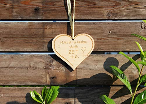 Zirbenherz - Nichts ist so kostbar wie die Zeit mit Dir - Spruch Geschenk aus Zirbenholz Holz inkl. Band zum Aufhängen