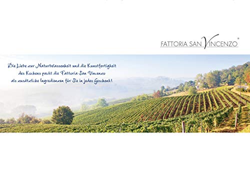DAS PERFEKTE GESCHENK zum Muttertag und für Freunde, die gerne kochen und Freude an hochwertigen Zutaten haben. Verschenken Sie Zeit des Genießens mit Familie und Freunden.. ECHTE ITALIENISCHE FEINKOST von der Fattoria San Vincezo, die ausschließlich mit erntefrischen Rohstoffen und feinsten Essenzen für die italienische Gourmetküche kocht. Selbstverständlich ohne Farbstoffe und Konservierungsmittel. Organische Substanzen von hohem Nährwert sind die Basis für diese Delikatessen.. LIEBEVOLL DEKORATIV VERPACKT sind in diesem stilechten Natur-Gechenkkarton fruchtiges Olivenöl extravergine, dunkler gehaltvoller Balsamico-Essig, feines Tomaten Bruschetta. mineralienreiches Meersalz und passend dazu das hochwertige Salzfass aus Buche von Scanwood. TRADITION & QUALITÄT - seit über 30 Jahren stehen wir für außergewöhnliche Feinkost Geschenke, die im Lebensmittel Einzelhandel nicht zu finden sind. Das macht Ihr Geschenk so exclusiv und besonders!