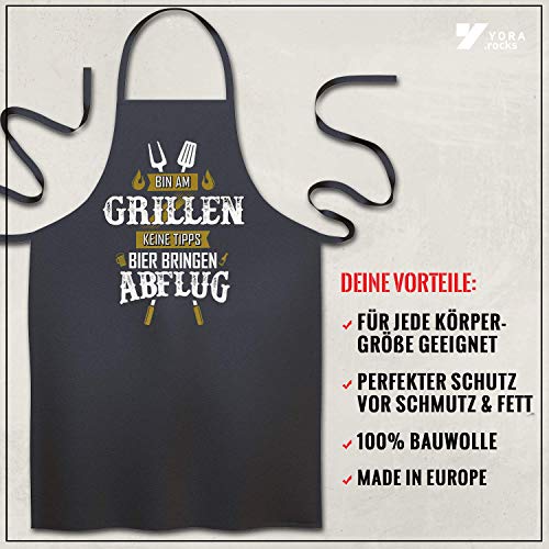 LUSTIGE GRILLSCHÜRZE FÜR MÄNNER: Die BBQ Schürze ist der absolute Blickfänger auf jeder Grillparty und das perfekte Geburtstagsgeschenk für den Papa / Vater.. PASST JEDEM GRILLMEISTER: Die schwarze Grill Schürze (60cmx90cm) passt Dank der langen Bändel dem Schlanken, als auch dem Griller mit schönem Bierbauch. Die Männer Schürze schützt zuverlässig von der Brust bis zum Knie.. WITZIGES GRILLZUBEHÖR GESCHENK FÜR MÄNNER: Egal ob zum Vatertag oder als Geburtstagsgeschenk für Männer (30 40 50 oder 60 Geburtstag). Das Grillzubehör Geschenk für Männer sorgt schon beim Auspacken für fantastische Stimmung.. MIT PERSONALISIERBARER EHRENURKUNDE: Zur Maenner Grillschürzen wird eine hochwertige Ehrenurkunde geliefert, die das Männergeschenk abrundet. Einfach den Namen eintragen und verschenken. Das lustige Herrentag Geschenk von Yora.. PFLEGELEICHTES MÄNNERGESCHENK: Die Männer Schürze ist nach dem Grillen voller Fett und Bier? Kein Problem! Die Barbecue Grillschürze für den Mann ist hochwertig verarbeitet und kann in der Maschine gewaschen werden.