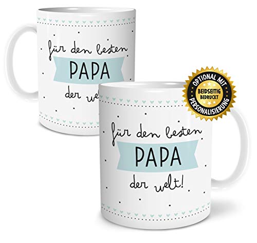 <b>PERSONALISIERUNG OPTIONAL:</b> Du kannst das Produkt optional personalisieren – so erhältst Du ein individuelles Geschenk. Wähle dazu die personalisierbare Variante aus, klicke auf <b>JETZT ANPASSEN</b> und gebe Deinen Wunschnamen oder Wunschtext ein.. <b>HOHE FARBBRILLANZ:</b> Die liebevoll gestaltete Kaffeetasse besticht mit einer hohen Farbbrillanz und Langlebigkeit durch den hochwertigen Thermo-Transfer-Druck. Der Kaffee-Becher wird in einem hübschen Geschenkkarton geliefert.. <b>SEHR PFLEGELEICHT & HOCHWERTIG:</b> Die große Tee-Tasse fasst 300 ml und ist durch die spezielle Beschichtung spülmaschinengeeignet (bis zu 3500 Spülgänge), sehr pflegeleicht, kratzfest, Mikrowellen geeignet und sehr hochwertig verarbeitet.. <b>SCHÖNE GESCHENKIDEE:</b> Das Motiv ist eine schöne Geschenkidee zu Weihnachten als Weihnachtsgeschenk für Papa, als Dankeschön Geschenk, als Geburtstagsgeschenk für Papa oder als Geschenk zum Vatertag als Vatertagsgeschenk.. <b>100% ZUFRIEDENHEIT:</b> Das Produkt wird mit viel Liebe in unserer Manufaktur in Deutschland in Handarbeit hergestellt. Die Qualität unserer Produkte liegt uns dabei sehr am Herzen. Solltest Du dennoch unzufrieden sein, erhältst Du Dein Geld zurück!