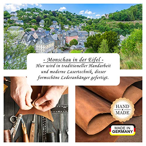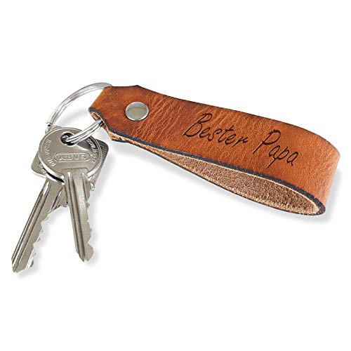 GESCHENK für PAPA - Verschenke deine persönliche Botschaft und zeige mit dem charmanten Schlüsselanhänger, was er dir bedeutet. Egal ob zu Weihnachten, Geburtstag, Vatertag oder einfach so, über persönliche Geschenke freut sich doch jeder. PERSÖNLICHE NOTE - Durch das schöne Schlüsselband wird der Papa jeden Tag an dich und den wertvollen Moment erinnert. Made in Germany - In der wunderschönen Eifel im mittelalterlichen Städtchen Monschau wird der Schlüsselanhänger hergestellt. Bewehrtes traditionelles Handwerk wurde mit moderner Lasertechnik ergänzt - entstanden ist ein langlebiges und hochwertiges Produkt im zeitlosen Design.. Italienisches Leder Das vegetabil gegerbte Voll-Rindleder kommt aus Italien ein hochwertiges Naturprodukt welches sich durch Langlebigkeit und Nachhaltigkeit auszeichnet. Die einzigartige Oberfläche wird mit der Zeit und durch das Tragen immer schöner und entwickelt einen individuellen Charakter. Praktisch, Wie Papa das mag! Der Schlüsselbund fungiert nicht nur als permanente Erinnerung, er ist auch sehr praktisch: Der Anhänger eignet sich für jeden Schlüssel. Mit einem Durchmesser von 33 Millimetern bietet der Flache Schlüsselring einer großen Zahl von Schlüsseln Platz und mit 14 Gramm ist er super leicht und trotzdem robust. Der Lederband mit der Länge von 10 cm ist immer leicht und bequem greifbar.