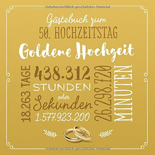 Ga?stebuch zum 50. Hochzeitstag ~ Goldene Hochzeit: Deko & Geschenk zur Feier der Goldhochzeit - 50 Jahre - Buch für Glückwünsche und Fotos der Gäste 9.76 EUR ... [mehr] Zur Wunschliste hinzufügen Auf Wunschliste Zum Anbieter