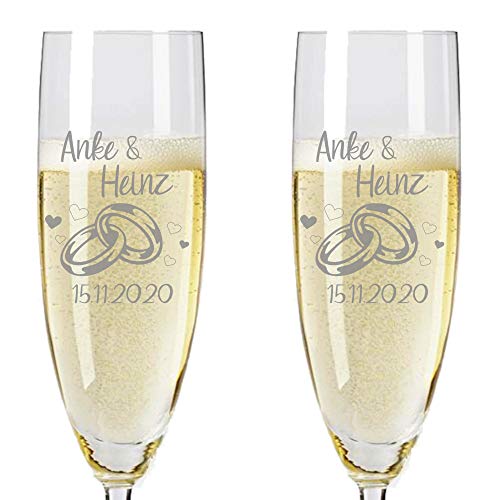 Leonardo 2 Sektgläser mit Gravur des Namens zur Hochzeit Motiv Ringe Sekt-Glas graviert Geschenkidee