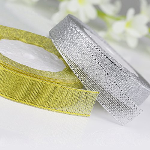 Material: Metallic Polyester. Breite: ca.20mm, Länge:25Yard /Rolle 2 Rollen geliefert. elegant-Look und leicht zu schneiden für die Verwendung. Die Oberfläche ist glänzend, Metallic glitter Band ist perfekt für Seasons’ Dekoration, Geburtstag- und Hochzeitsgeschenk Dekoration. Gute Dekoration für Hochzeiten, Taufen, Geburtstagen oder Weihnachten,auch geeignet für Geschenkverpackungen, Bastelarbeiten und Haarschleifen usw.