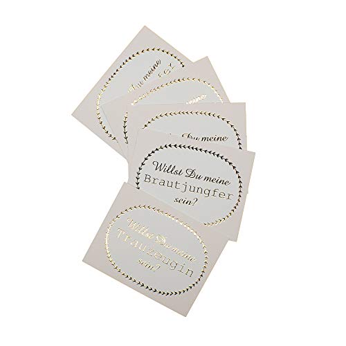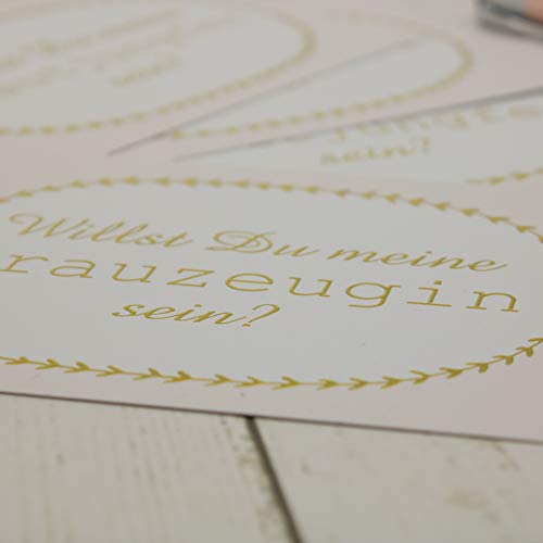 Willst Du meine Brautjungfer & Trauzeugin sein? 5 x Postkarte rosa gold metallic Karte Hochzeit Geschenk für Bridesmaid & Maid of Honor Frage stellen oval Vintage
