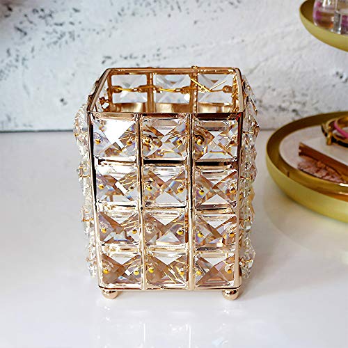 ? Abmessung: 9 cm x 12 cm / 3,54 "x 4,72". ? Material: Metall mit quadratischem Kristall Massiv und sehr stabil.. ? Multifunktion: Perfekt für die Organisation von Make-up-Pinseln, Kosmetika, Zahnbürsten, Stiftbleistift-Büromaterial, Kerzenhalter. ? Modernes Design: Modernes, schlichtes Design, ideal für die Dekoration Ihrer Kommode, Ihres Schreibtisches, Ihrer Theke oder Ihrer Tischplatte zu Hause. ? Dekoration Modernes Zuhause: Glänzendes künstliches Kristalldesign, kann Vase für künstliche Blumen sein, als vorzügliche Verzierungen für Wohnzimmer, Badezimmer, Hochzeitstafel,Party mittelstück