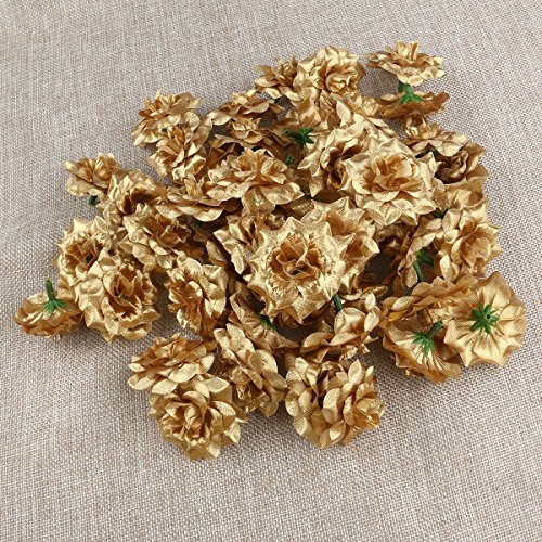 VORCOOL 50 Stück Kunstblumen Rosenköpfe Stoffrosen Deko-Blüte (Golden)