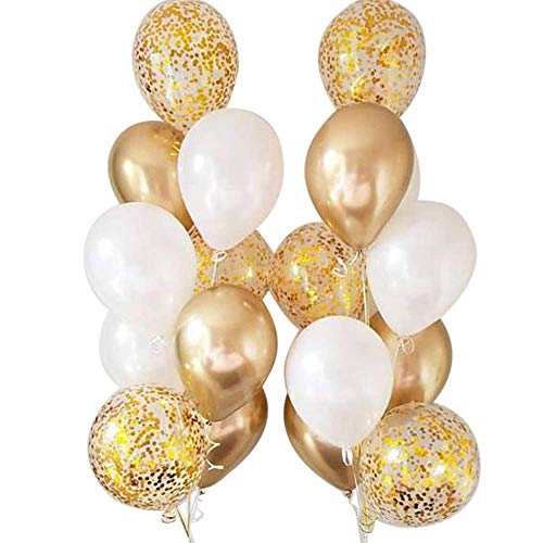 ? 30 Weiß Ballons + 20 Konfetti Ballons + 10 Metallisch Golden Latex Ballons. Größe nach dem Aufblasen ca.30cm/12inch, 2.8g dick Latexballon.. ? Ballons können mit Luft, Helium, Wasserstoff usw. gefüllt warden. Der Paillettenballon braucht mehr Statik, damit das Konfetti am besten an den Seiten der Luftballons haftet, und schlägt vor, es nach dem Aufblasen auf einem Teppich oder Haar zu reiben.. ? Geeignet für viele verschiedene Anlässe, wie Geburtstagsfeier, Hochzeit Dekoration, Jubiläumsfeier, Brautdusche oder andere Feiertage, Party Dekoration. Nettes Spielzeug und Geschenk für Kinder.. ? Die Latex Luftballons bestehen aus Naturlatex und ist ungiftig. Sie können eine sichere und überraschende Party genießen.. ? 100% Zufriedenheit Garantiert. Wenn Sie irgendwelche Probleme haben, zögern Sie nicht, mit uns in Kontakt zu treten, wir versprechen Ihnen eine zufriedenstellende Lösung.