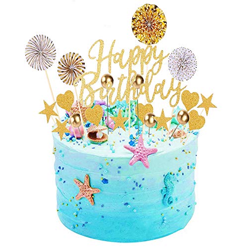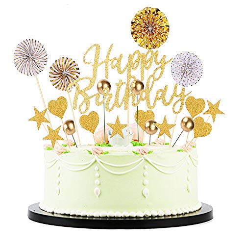 Kuchen Topper Set: 1* Happy Birthday Topper + 5* Sternformaufsätze Topper + 5* Herzformaufsätze Topper + 5* Goldene Kugelkuchendekoration + 4* Papierfächer.. Sicher, einfach und einfach zu bedienen.. Sicheres Material: Hergestellt aus sicherem und ungiftigem nicht essbarem Modelliermaterial. Rainbow wird aus weichem Ton hergestellt. Star und Love werden aus Pappe hergestellt. Cloud wird aus Schaumstoff hergestellt. Sie sind alle ungiftig und nicht essbar. Waschbar und wiederverwendbar.. Weit verbreitet: Es kann als Party-Gefälligkeit, Kuchendeckel, Tischdekoration oder als Geschenk für Hochzeit, Geburtstag, Jubiläum, ein neues Baby oder ein anderes besonderes Ereignis verwendet werden. romantisch und gedenk.. Dies ist nicht essbar, nur zur Dekoration, bitte nicht im Ofen oder in der Mikrowelle verwenden.