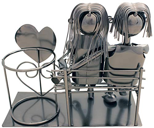 BRUBAKER Flaschenhalter Liebespaar auf Bank Metall Skulptur Geschenk mit Geschenkkarte
