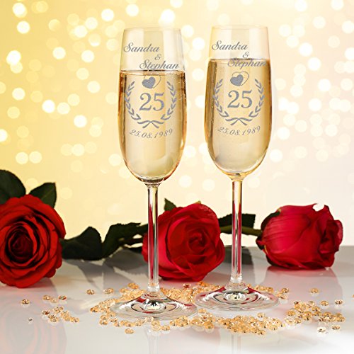polar-effekt 2er Set Montana Sektgläser Hochzeitsgeschenk - Personalisiert mit Gravur - Namen Datum - Geschenk-Idee zur Hochzeit Motiv - Jubiläumskranz