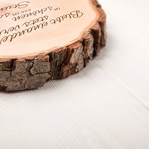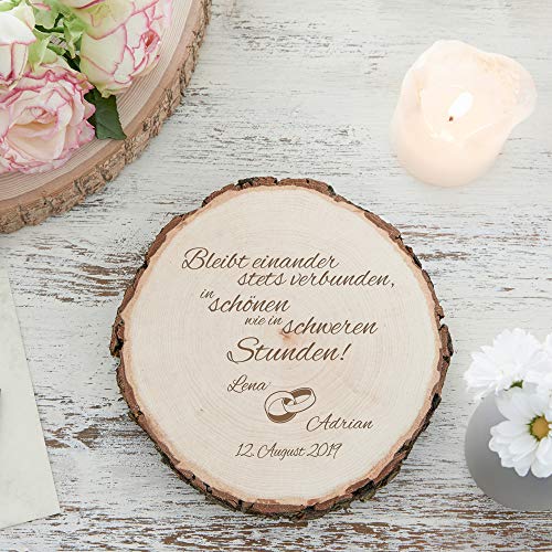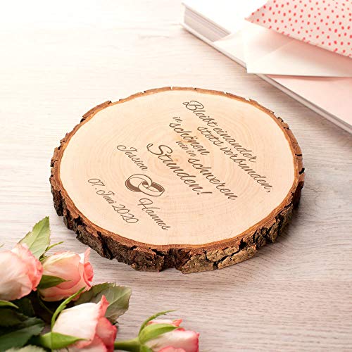 Casa Vivente Baumscheibe mit Gravur – Personalisiert mit Namen und Datum – Motiv Ringe – Dekoration – Türschild – Geschenkidee zur Hochzeit – Hochzeitsgeschenk