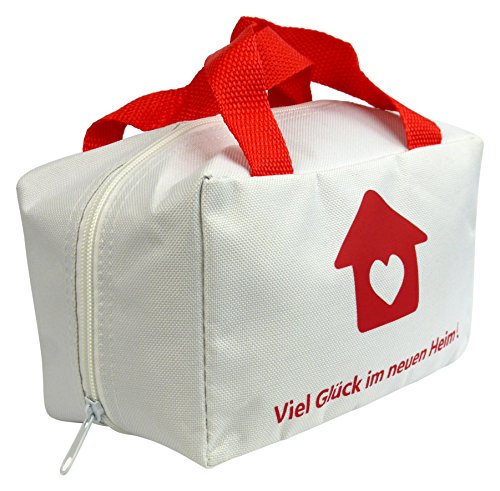 Lustige Tasche „Viel Glück im neuen Heim“ für Geschenke zum Einzug oder Umzug Einweihungsgeschenk Einzugsgeschenk Geschenk zum Richtfest oder Geschenkidee zum Hauskauf Hausbau Wohnung Geldgeschenk