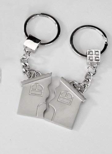 Formano Partnerschlüsselanhänger Schlüsselanhänger 2-tlg. Haus aus versilbertem Zink mit Strass-Steinen 4,5 x 4 cm- Silber