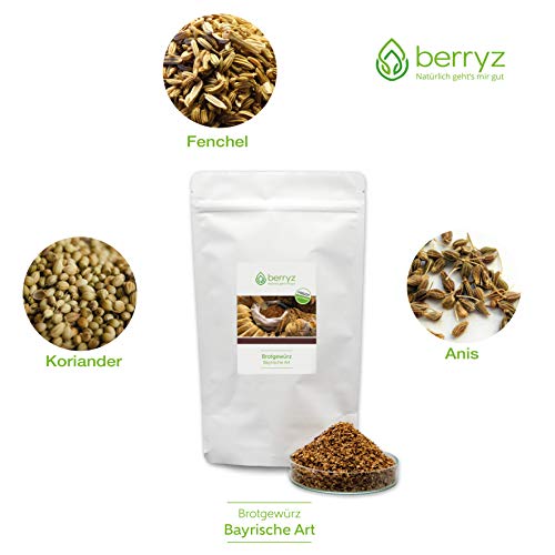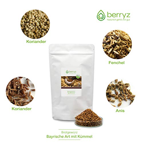 Brotgewürz 3-er Set: Bayrische Art + Mediterrane Art + Bayrische Art mit Kümmel. Das sinnvolle Geschenk zu Weihnachten. Premium Qualität mit ausgesuchten Kräutern für ein traumhaftes Aroma. berryz Mediterranes Brotgewürz eignet sich besonders zur Verfeinerung von selbstgebackenen Broten, hat ein angenehmes Aroma und gibt ihrem Brotteig das gewisse Extra.. FRISCH und VIELSEITIG | Eignet sich hervorragend um Brot wie z.B. Dinkelbrot, Vollkornbrot, Eiweißbrot, Low Carb Brot oder auch Sauerteigbrot herzhaft zu verfeinern. Aber auch viele Speisen wie z.B. Nudelgerichte oder Salate schmecken mit diesen Kräutermischungen herrlich!. NUR REINE GEWÜRZE: berryz Brotgewürz wird garantiert ohne Zusatz von Geschmacksverstärkern, Farbstoffen, Aromen, Salz oder Zucker hergestellt. Im wiederverschließbaren Aromabeutel.. EIGENE HERSTELLUNG: Da wir, als Spezialisten für Kräuter und Gewürze alle Produkte SELBER HERSTELLEN, können wir GARANTIEREN, dass keine Allergene wie Sellerie, Erdnüsse o.ä. enthalten sind.