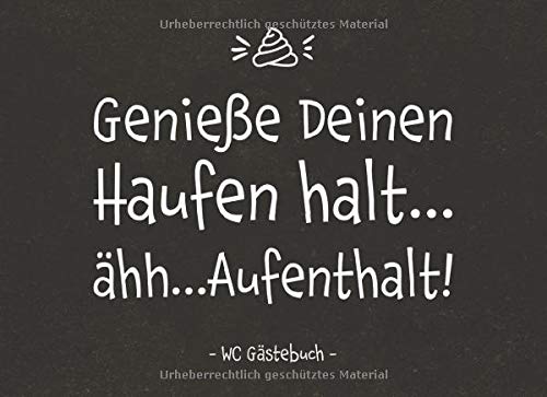 Genieße Deinen Haufen halt...ähh...Aufenthalt! WC Gästebuch: Klo Gästebuch zum Eintragen, Toiletten Gästebuch als lustiges Geschenk zum Einzug, Umzug ... Einzugsgeschenk für Männer, Frauen und WG 8.82 EUR ... [mehr] Zur Wunschliste hinzufügen Auf Wunschliste Zum Anbieter