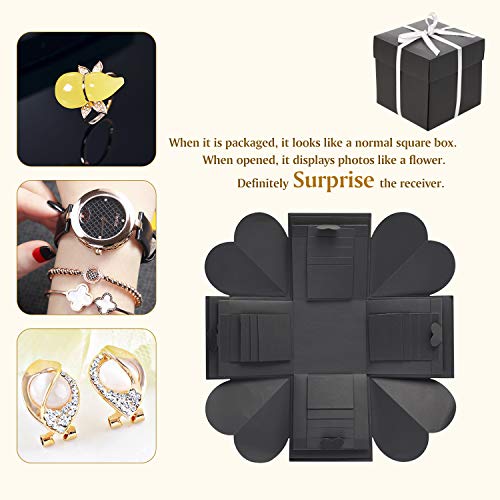PAKET ENTHÄLT - Diese Geschenkbox enthält 1 explosive Box, 5 bunte Karten (verstecken in der Box), 1 beige Band und 1 eingebaute mittlere kleine Box. Verpackte äußere Box Größe 16x16x16 cm, Überraschung Box geöffnet Größe 45 x 45 cm, die kleine Box in der mittleren Größe 7x7 x 7,5 cm.. KREATIVES DESIGN - Sie können fast 100 verschieden große Fotos in die 20 entworfenen Teile in der großen Schachtel einlegen, um die Schachtel zu einem Schaufenster für Bilder zu machen. Und die überraschenden Einzelteile, wie Ring, Uhr, Halskette oder andere Waren können in die kleine Kiste gelegt werden. Durchsuchen Sie die VEESUN-Explosionsbox auf YTB, um das Tutorial-Tutorial zu sehen.. PERFEKTE GESCHENKE - Wenn es verpackt ist, ist es eine quadratische Box. Wenn geöffnet, zeigt es Fotos mit Überraschung. Dies wird ein perfektes handgefertigtes Geschenk mit wertvollen Erinnerungen, drücken Sie Ihren Dank und Liebe auf Engagement Weihnachten, Valentinstag, Geburtstag, Jubiläum und Abschlussfeier etc.. EINFACH ZU BEDIENEN - Alle Teile wurden entworfen und platziert in der richtigen Position, alles, was Sie tun müssen ist, füllen Sie die Fotos und dekorieren Sie es mit Ihren eigenen Ideen, und Sie können eine schöne und exquisite Erinnerung Buch bekommen. Es ist auch eine gute Idee, es zusammen mit deiner Familie und Freunden zu machen. Sie können es zu einem Polaroid-Album, einem Hochzeitsalbum, einem Babyalbum und so weiter machen.