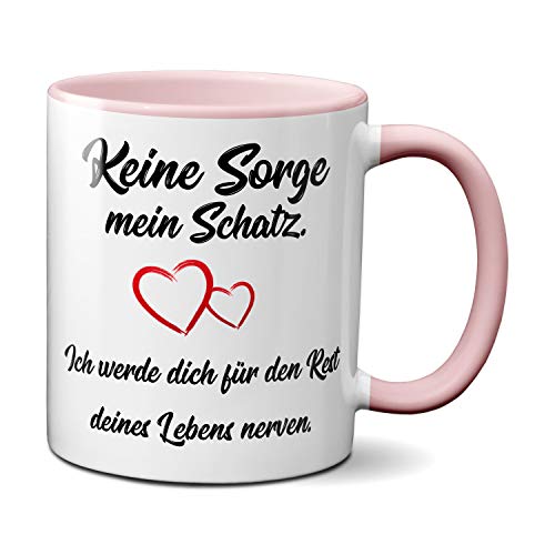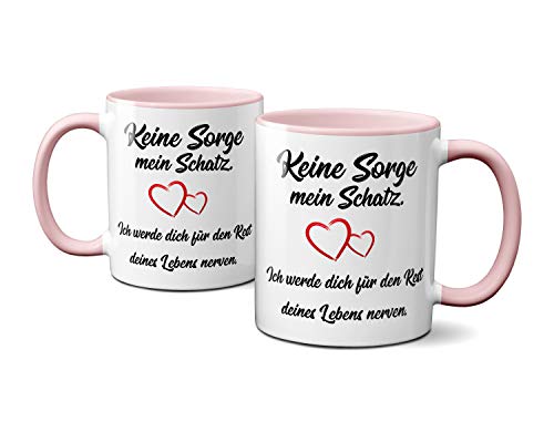 Keine Sorge mein Schatz, ich werde dich für den Rest deines Lebens nerven. Tasse, Kaffeetasse mit Motiv, Tasse mit Spruch, Original TassenKing® (rosa)