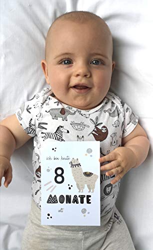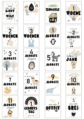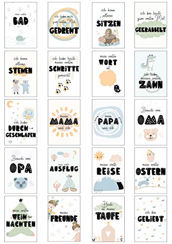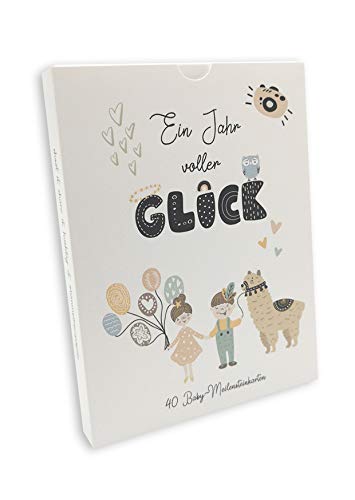 ? EIN JAHR VOLLER GLÜCK – Babymeilensteinkarten. Das erste Lebensjahr gehört für die meisten Eltern zu einem der aufregendsten ihres Kindes.. ? GLÜCKSMOMENTE - Diese 40 liebevoll gestalteten Karten helfen dir dabei, die einzelnen Meilensteine deines Kindes festzuhalten und so tolle Erinnerungen für das Fotobuch zu schaffen.. ? GESCHENKIDEE - Die Karten sind in DIN A6 auf 300g/m² Designpapier gedruckt. Das Kartenset ist in einer schönen Erinnerungsbox verpackt und eignet sich somit auch hervorragend zum verschenken an die werdende Mama oder den werdenden Papa.. ? MADE IN GERMANY - Unsere Meilensteinkarten werden nicht nur in Deutschland designt, sondern auch gedruckt, sortiert und in liebevoller Handarbeit verpackt.. ? 100% GELD-ZURÜCK - Wir von Himmel.Herz.Papier vertrauen in unsere Qualität und möchten Ihnen deshalb einen absolut risikofreien Kauf ermöglichen. Sollten Sie nach 30 Tagen nicht zu 100,0% zufrieden sein, erhalten Sie Ihr Geld zurück!