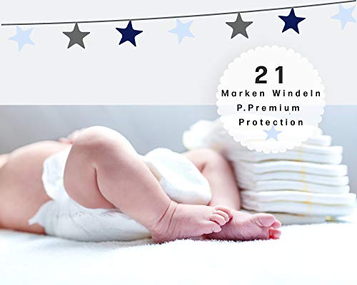 INHALT WINDELTORTE „ Junge“ mit coolem Spruch „50% Mama 50% Papa 100% Perfekt“ 1x Babylätzchen mit Druck, 1x Babysocken Größe 0-6 Monate, 21 Marken Windeln -Standard Windelgröße ist Größe 2 (4-8kg) Premium Protection. In unserer Produktion in Thaleischweiler-Fröschen wird mit sehr viel Liebe zum Detail die Windeltorten in Handarbeit hergestellt. Wir verwenden nur MARKEN WINDELN für unsere Diaper Cakes.. UNSERE BABYMODE wird in Deutschland in unserer Produktion im Transferverfahren HANDMADE bedruckt. Dieser Druck bietet eine tolle Leuchtkraft und eine klasse Haltbarkeit, auch nach vielen Wäschen.. WINDELTORTEN das besondere Babygeschenk. In liebevoller HANDARBEIT werden unsere Torten aus Windeln in Deutschland fair hergestellt. Das ideale Geschenk zur Geburt oder Babyparty. Unsere Windeltorten werden hochwertig mit cooler Baby Mode bestückt ein sinnvolles und nützliches Geschenk fürs Baby und die frischgebackenen Eltern.. Die Windeltorten werden nach der Herstelllung in einem trendigen Geschenkkarton mit Sichtfenster verpackt,so kannst du dir sicher sein dass deine Windeltorte sicher bei dir ankommt.