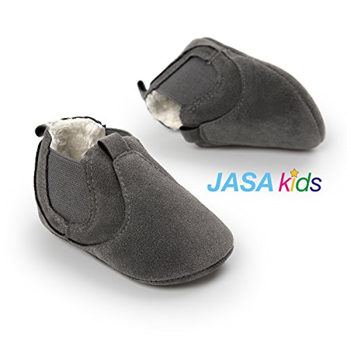 JASA kids Babyschuhe Krabbelschuhe Lauflernschuhe Chelseaboots für Neugeborene Säuglinge Jungen Mädchen (11 cm, Grau)
