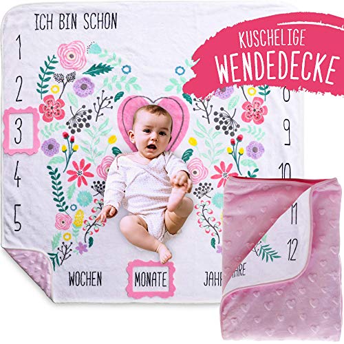 ???????????????????????????????? ???????????????????????? ???????????? ????????????????????Ä???????????????????????? ????????????????????????????????????????????????Ö???????????????????????????????????????????? - Unsere Decke ist eine Meilenstein Wendedecke: Nutzt eine Seite als Meilenstein Fotohintergrund für euer Baby Fotoshooting und haltet das Wachstum eures Mädchens/ Jungens fest. Die andere Seite, mit rosa Herzen, ist perfekt für den Alltag zum Zudecken, Warmhalten und Spielen. ... [mehr]