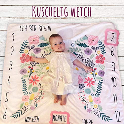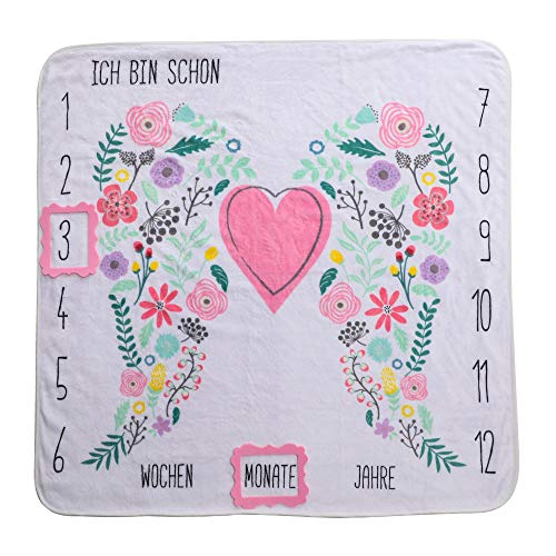 Rosa Baby Meilenstein Decke mit Blumen Flügeln Öko Tex Zertifiziert als Geschenk zur Geburt