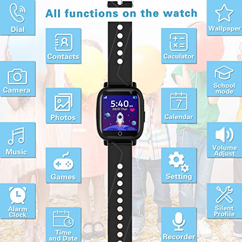 ???? ?Smartwatch für Kinder? Mit dem neuen Design in den klassischen 3 Farben (Schwarz, Blau, Pink) kann die Smart Watch Ihre unterschiedlichen Vorlieben erfüllen. Die fortschrittliche Kinder-Smartwatch für Jungen und Mädchen hat viele Funktionen, wie z. B. Anrufen / SOS / Kamera / Spiele / Musik / Wecker / Taschenrechner / Kalender / Hintergrundbild / Schulmodus / Sprachen wechseln usw.. ???? ?Verbesserte Uhrenfunktionen? Diese intelligente Kinderuhr verfügt über die neuesten aktualisierten Kamera- und benutzerdefinierten Hintergrundfunktionen. Kinder können jederzeit Fotos machen und gleichzeitig ihre Lieblingsbilder als Hintergrundbild festlegen. Wenn Sie Telefon- und SOS-Funktionen verwenden möchten, müssen Sie eine 2G-SIM-Karte kaufen. Über die Kontakte können Sie 10 Telefonnummern hinzufügen und den Kontaktnamen bearbeiten.. ???? ?Musik und lustige Spiele? Mit der Funktion Musik können Sie MP3-Musik vom Computer herunterladen und unter "Meine Musik“ in der Smartwatch speichern, dann die Lautstärke anpassen und die Musik genießen! Die Smartwatch hat auch 7 Lernspiele - 2048 / Basketball Shoot Master / Bienenkrieg / Flipper Hit Bricks / Car Grab Goods / Eat Gold / Ultimate Racing. Diese werden Kindern viel Spaß machen.. ???? ?Einfach zu bedienen? Sie müssen keine App herunterladen oder eine Verbindung zum Handy der Eltern herstellen. Die Kinder Samrtwatch ist sehr einfach zu bedienen. Mit der 2G-SIM-Karte fügt die Uhr Anruf- und SOS-Funktionen hinzu. Ohne SIM-Karte können die folgenden Funktionen weiterhin funktionieren, z. B. das Einstellen der richtigen Zeit, das Hören von Musik, das Aufnehmen von Bildern, das Spielen von Spielen, Wecker, der Taschenrechner usw.. ???? ?Gute Wahl für Geschenk? Diese intelligente Uhr ist ein Geschenk für Kinder. Sie können es als Geschenk für Kindertag, Ostern, Weihnachten, Thanksgiving und andere Geschenke verwenden. Es kann auch als Geburtstagsgeschenk für Jungen und Mädchen verwendet werden. Hinweis: Nachdem die Uhr vollständig aufgeladen ist, ziehen Sie bitte das USB-Kabel von der Stromquelle ab. Wenn Sie das USB-Kabel an die Stromquelle anschließen, darf der Ladeanschluss die eisenhaltigen Produkte nicht berühren.