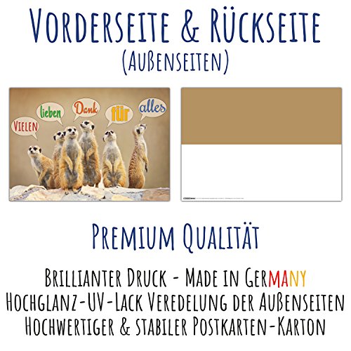 XXL-KARTEN-SET - Sie erhalten eine extra große Karte zum Aufklappen im DIN A4 Format (geschlossen: 29,7 x 21 cm - aufgeklappt ist das DIN A3: 29,7 x 42 cm) und einen Umschlag mit Papprücken in Weiß.. EINFACHES AUSFÜLLEN - Die Innenseiten der Danksagungskarte sind sehr gut beschreibbar und bieten durch ihre Größe Platz für viele Dankeschön, Wünsche und Unterschriften der Freunde oder Kollegen.. PREMIUM QUALITÄT - Die Universal Dankes-Karte ist aus stabilem Postkartenkarton. Der weiße Umschlag mit Papprücken ist haftklebend - mit Haftklebestreifen, den Sie zum Verschließen einfach abziehen.. BRILLIANTER DRUCK - Die Außenseiten begeistern durch Hochglanz-UV-Lack Veredelung. Die Innenseiten sind durch den Postkarten-Karton gut mit allen üblichen Stiften zu beschriften. Einfach Danke sagen!. UNIVERSALGENIE - Egal ob Anrede Du oder Sie, die Maxikarte ist ideal für alle Feierlichkeiten von Freunden, Verwandten, Arbeitskollegen, Mitarbeitern, Vorgesetzten oder Chef und als Geschenk-Beilage.