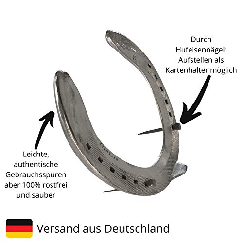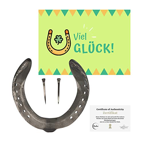 ???? Perfektes Geschenk: Ob zum Einzug, für einen neuen Lebensabschnitt, Geburtstag, Taufe, Geburt, Hochzeit, Glücksbringer für wichtige Vorhaben oder einfach um Deinem Lieblingsmenschen eine Freude zu machen!. ?? Umweltfreundlich und wertschätzend: Unsere Hufeisen werden auf einem deutschen Pferdehof von Hand aufwendig gereinigt. Das Echtheitszertifikat und die gratis Postkarte werden regional und Klimaneutral gedruckt. Alles wird regional in München verpackt in einer umweltfreundlichen Verpackung.. ???? Glücksymbol: Der Legende nach soll ein Hufeisen ein Mittel gegen Unglück, Krankheiten und Unheil sein. Das Hufeisen ist im Volksmund ein Talisman, also ein Glückbringer. Man ist sich aber uneinig darüber, ob es mit der Öffnung nach oben oder nach unten aufgehängt werden soll. Was ist Deine Meinung?. ? Besser als die Konkurrenz: Dieses Hufeisen ist aus Aluminium und somit 100% rostfrei. Im Lieferumfang enthalten sind Hufnägel, so lässt sich das Hufeisen wie ein Bilderhalter aufstellen - zum Beispiel für die mitgelieferte Karte oder das Echtheitszertifikat. Wir bieten ein komplettes Geschenkset welches direkt verschenkt werden kann!. ?? Deutscher Kundenservice und maximale Kundenzufriedenheit: Wir garantieren für die Echtheit des Hufeisens. Um Dir maximale Sicherheit zu geben, bieten wir eine 3-jährige Rückgabemöglichkeit für alle Makai Produkte. Eine Angabe von Gründen ist nicht erforderlich, um Dein Geld oder ein Ersatzprodukt zu erhalten. Jederzeit kannst Du unseren kostenlosen Kundenservice unter kundenservice@universals101.com kontaktieren. Wir sind für Dich da!