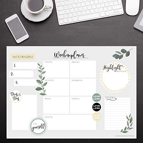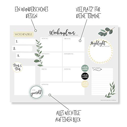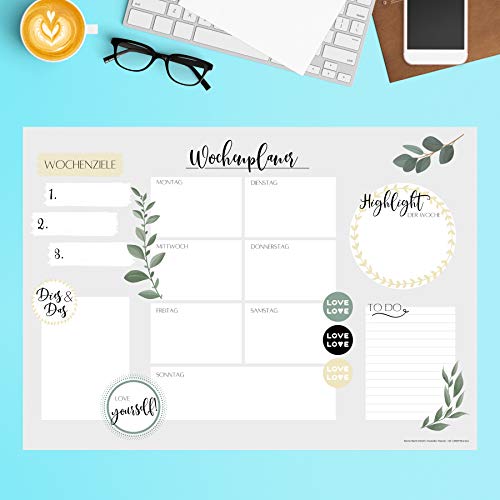 Wochenplaner Block A3 (25 Blatt) - Schreibtischunterlage mit To Do Liste - Wochen Planer aus Papier als Schreibtisch Unterlage - Weekly Planner Undatiert - Schreibunterlage mit Wochenplan - Love